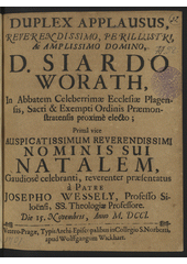 DUPLEX APPLAUSUS, ... D. SIARDO WORATH ... Ordinis Praemonstratensis proximè electo ...